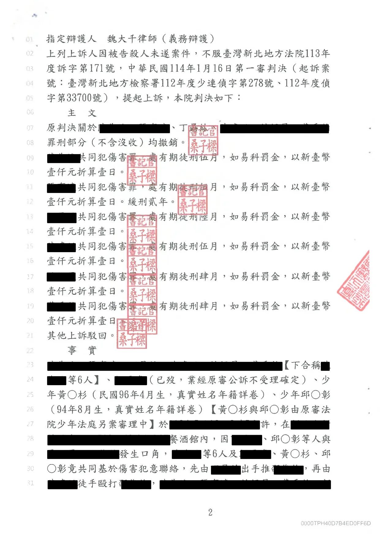 首頁 > 成功案例 > 民刑事案件 > 5.殺人未遂上訴二審成功改判傷害