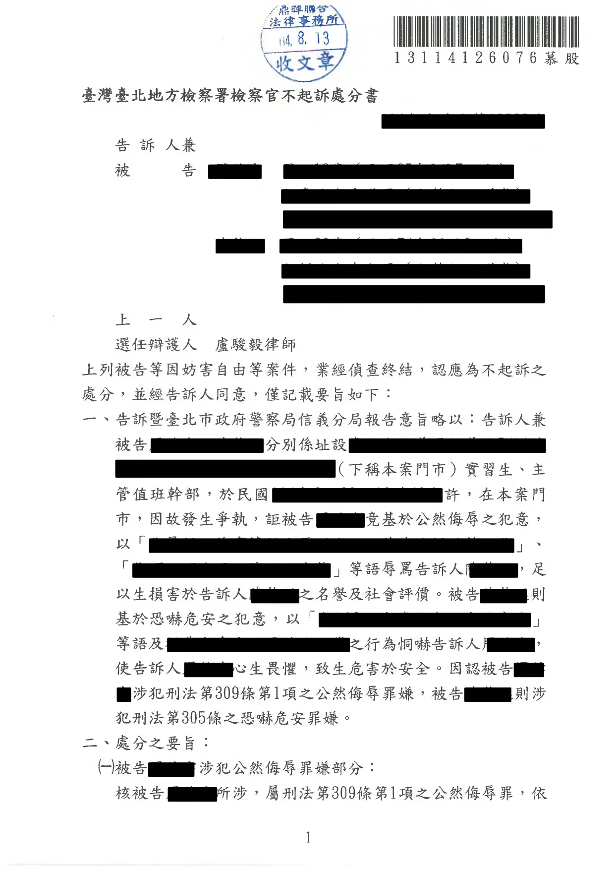 首頁 > 成功案例 > 民刑事案件 > 4.遭移送妨害自由成功不起訴