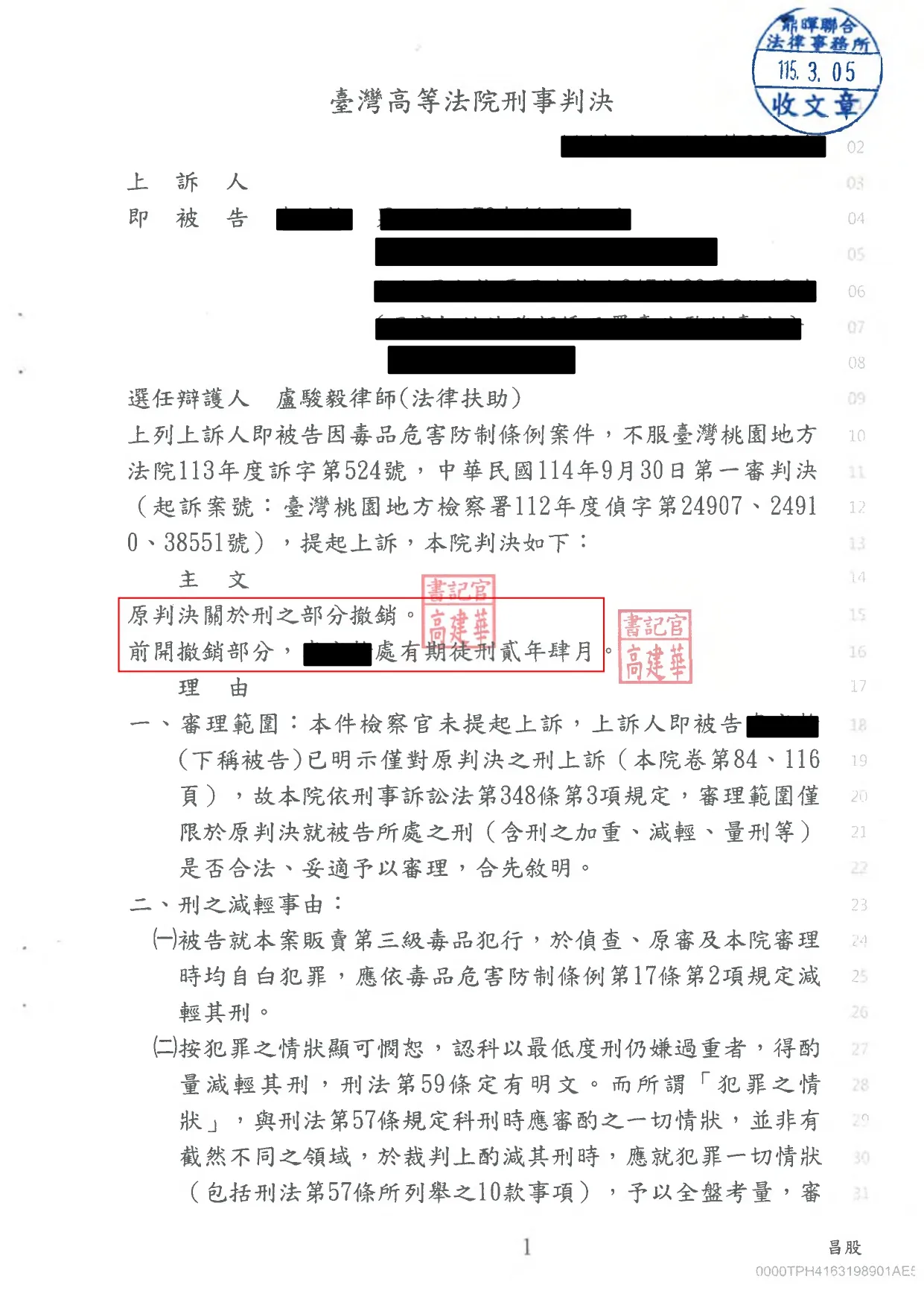 首頁 > 成功案例 > 民刑事案件 > 1.販賣三級毒品上訴二審成功減刑